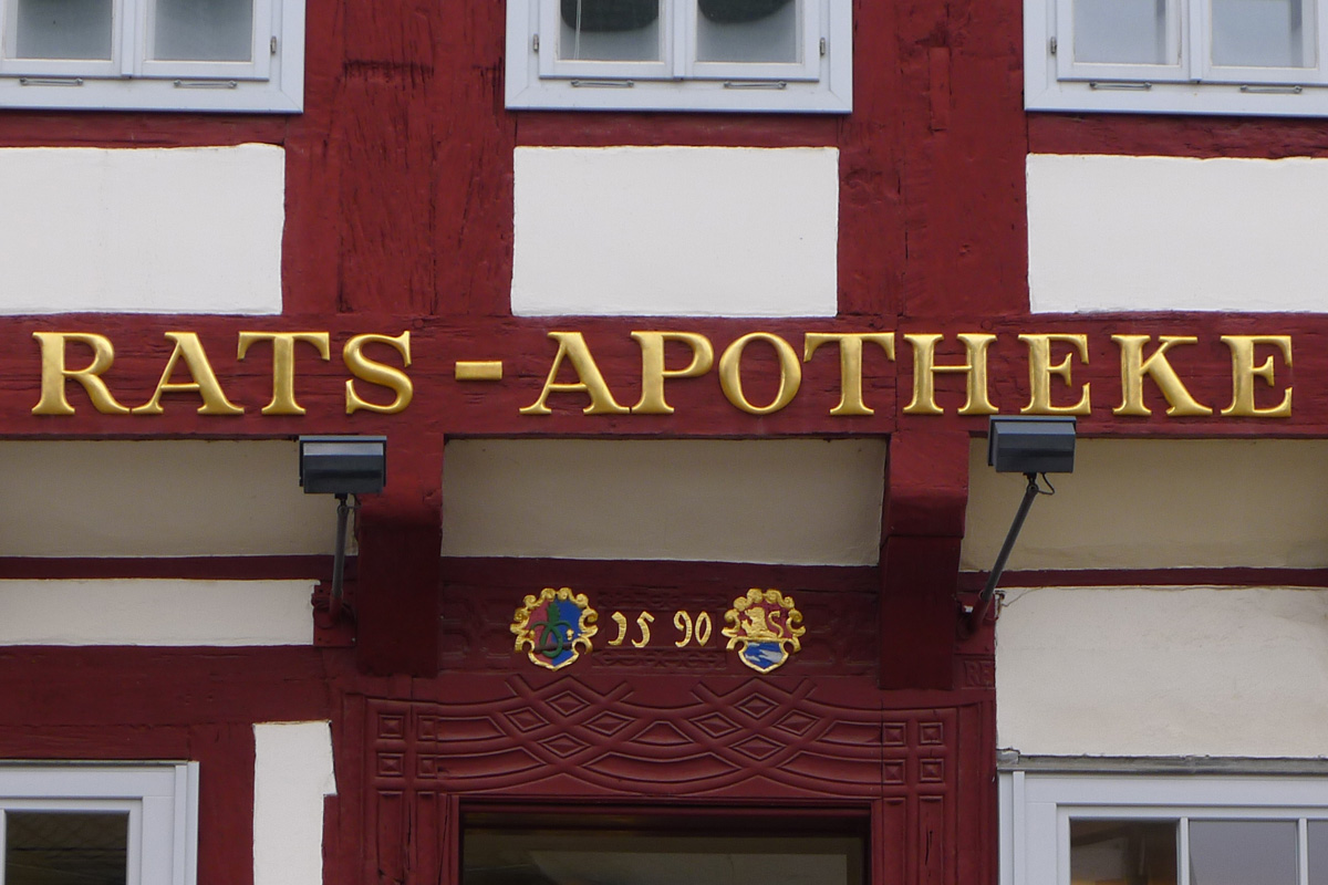 Nachweislich befindet sich seit 1833 die Rats Apotheke in diesem beeindruckenden Fachwerkhaus und seit 1927 ist es im Besitz der Familie Häussermann-Meineke.